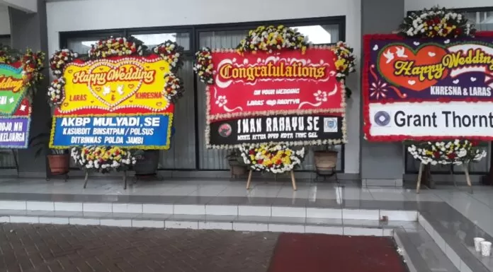 Pantauan Terkini.id, tampaknya pemilik hajatan tersebut bukan orang sembarangan. Hal itu diketahui dari deretan karangan bunga dari pejabat daerah setempat dan dari luar daerah tampak tertata rapi.